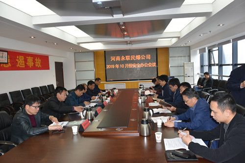 2019年10月25日,河南省永聯民爆器材股份有限公司召開了10月份安全辦公會議,公司領導班子、安委會成員、安委會辦公室成員以及新縣、鄧州市、寶豐縣、確山縣、南召縣、洛寧縣等6家分公司參加了會議,公司董事長劉嵩參加會議并講話。