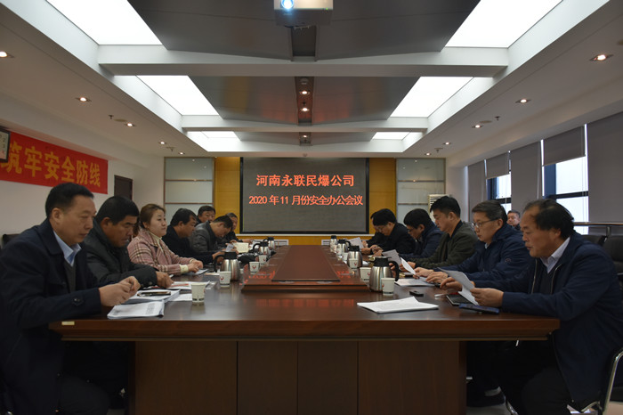 2020年11月30日,河南省永聯(lián)民爆器材股份有限公司召開了11月份安全辦公會議,公司領導班子、安委會成員、安委會辦公室成員以及宜陽縣、光山縣、寶豐縣、內(nèi)鄉(xiāng)縣、鶴壁、固始縣等6家分公司負責人參加了會議。會議由公司副總經(jīng)理靳義國主持,公司董事長、總經(jīng)理劉嵩參加會議并講話。