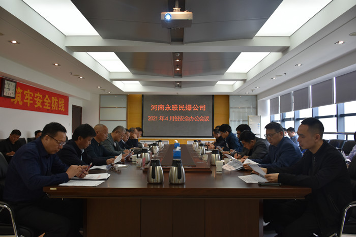 2021年4月29日,河南省永聯(lián)民爆器材股份有限公司召開了4月份安全辦公會議,公司領(lǐng)導班子、安委會成員、安委會辦公室成員以及靈寶市、嵩縣、魯山縣、淇縣、登封市、焦作市等6家分公司負責人參加了會議。會議由公司副總經(jīng)理靳義國主持,公司董事長、總經(jīng)理劉嵩參加會議并講話。