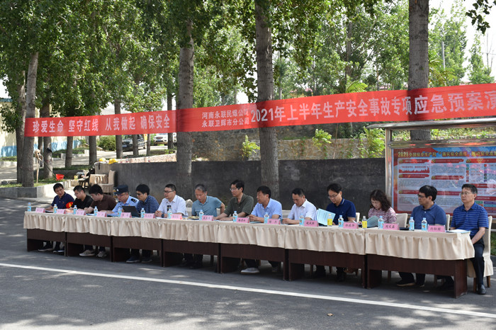 今年6月是全國第20個“安全生產月”,為進一步牢固樹立以人為本、安全發展的理念,防范化解重大風險、及時消除安全隱患、有效遏制生產安全事故,2021年6月18日,河南省永聯民爆器材股份有限公司與永聯衛輝市分公司聯合開展以“落實安全責任,推動安全發展”為主題的專項應急演練。公司特邀省委軍民融合辦二級巡視員張衛東,民爆局局長王玉生以及新鄉市工信局、衛輝市工信局等單位領導蒞臨現場觀摩指導。