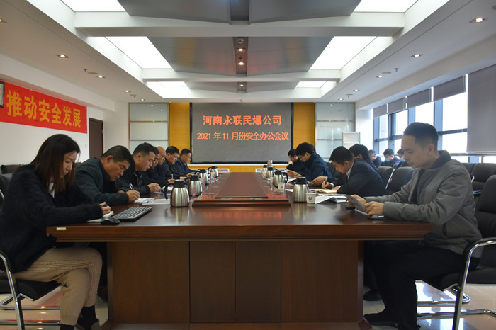 2021年11月26日,河南省永聯(lián)民爆器材股份有限公司召開了11月份安全辦公會(huì)議,公司領(lǐng)導(dǎo)班子、安委會(huì)成員、安委會(huì)辦公室成員以及欒川縣、平頂山力源、方城縣、內(nèi)鄉(xiāng)縣、鎮(zhèn)平、固始縣等6家分公司負(fù)責(zé)人參加了會(huì)議。會(huì)議由公司副總經(jīng)理靳義國(guó)主持,公司董事長(zhǎng)、總經(jīng)理劉嵩參加會(huì)議并講話。