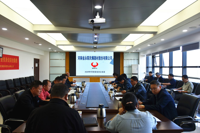 2025年9月24日,河南省永聯民爆器材股份有限公司召開了9月份安全辦公會議。公司安委會成員、安委會辦公室成員以及登封市、平頂山力源、南召縣、內鄉縣、陜州、偃師等6家分公司負責人參加了會議。會議由公司工會主席黃小虎主持,董事長劉嵩、總經理靳義國參加會議并講話。